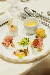 会場では、生演奏の音色とともに、能登の食材をふんだんに使用したその日限りの特別なコース料理をご提供。“食べることが支援につながる”時間をお楽しみいただきました。