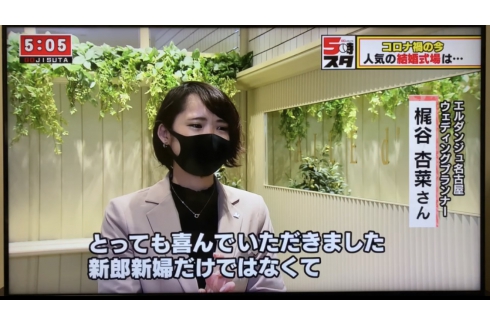 3月16日にエルダンジュナゴヤがテレビ愛知5時スタにコロナ禍の新たな結婚式の取り組みで取材を受けました。